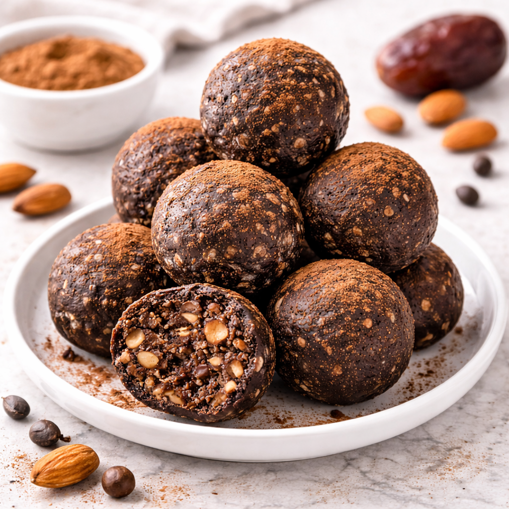 Why it works: Raw cacao protects mitochondria from oxidative damage. Healthy fats from nuts provide stable energy. No blood sugar crash.